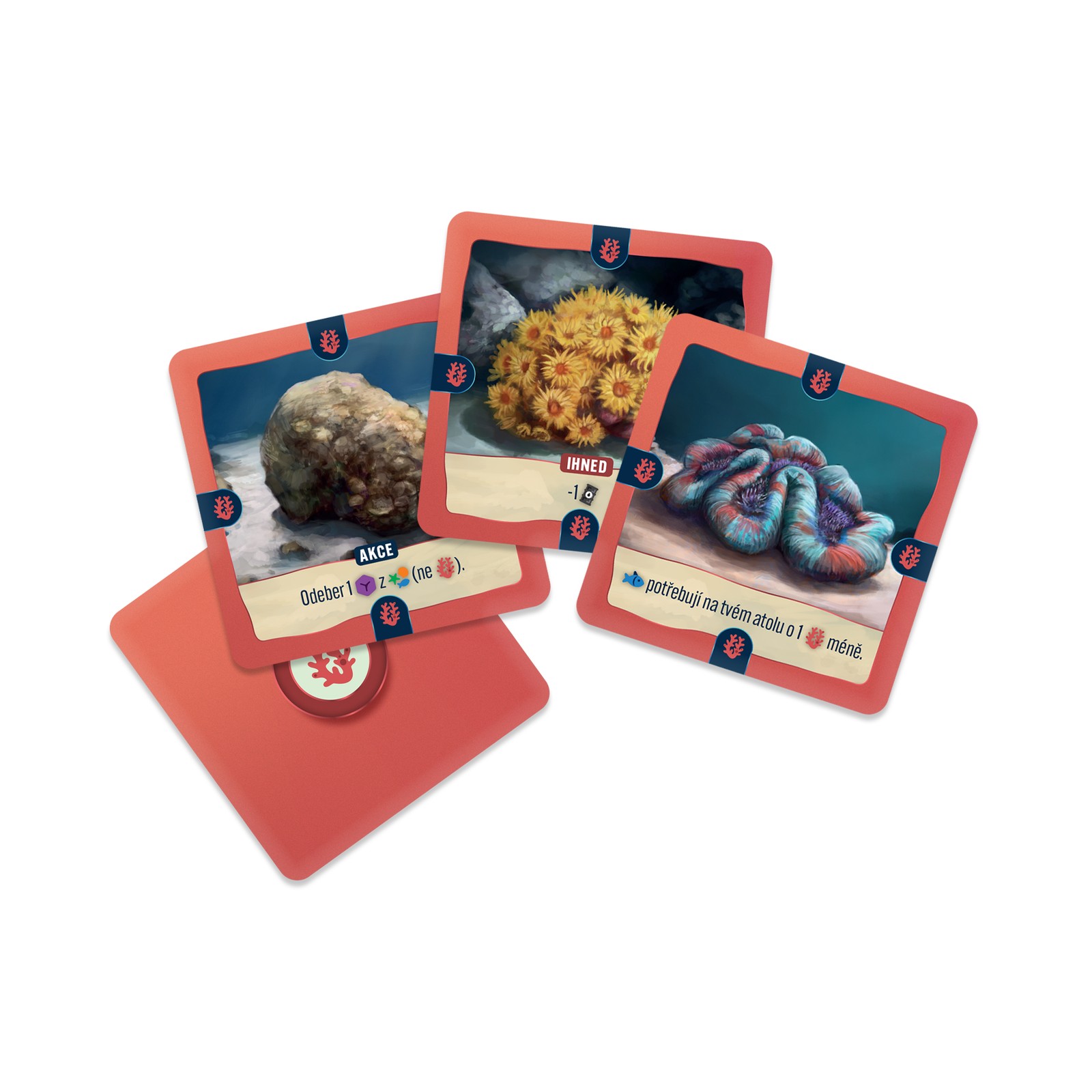 Atoll, winner of Albi’s very own Board Game design contest / reality show, designed by Jan Štěpánek and illustrated by Martina Lásková and Michal Peichl, is a 1 to 4 player engine building game for about an hour to ninety minutes. Your goal is to build the best possible ecosystem in which the population of fish and other creatures will thrive, and which will attract new species.