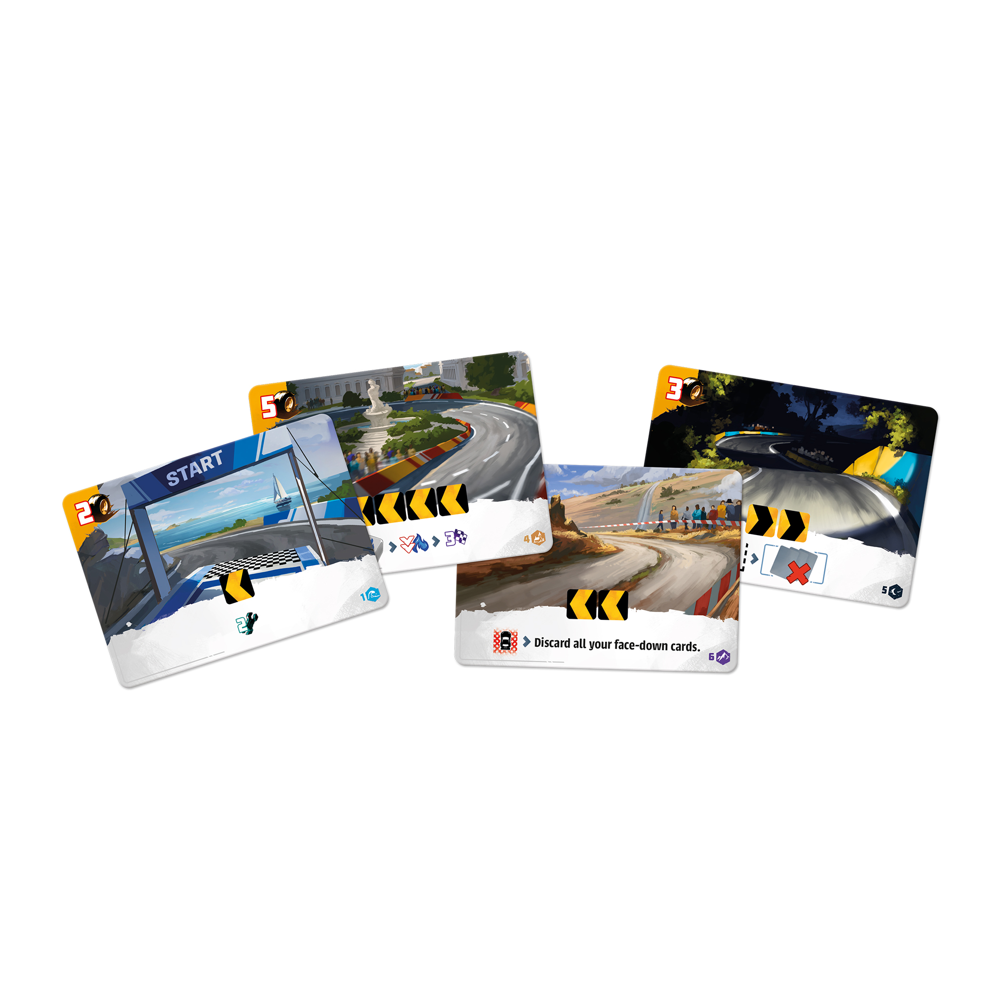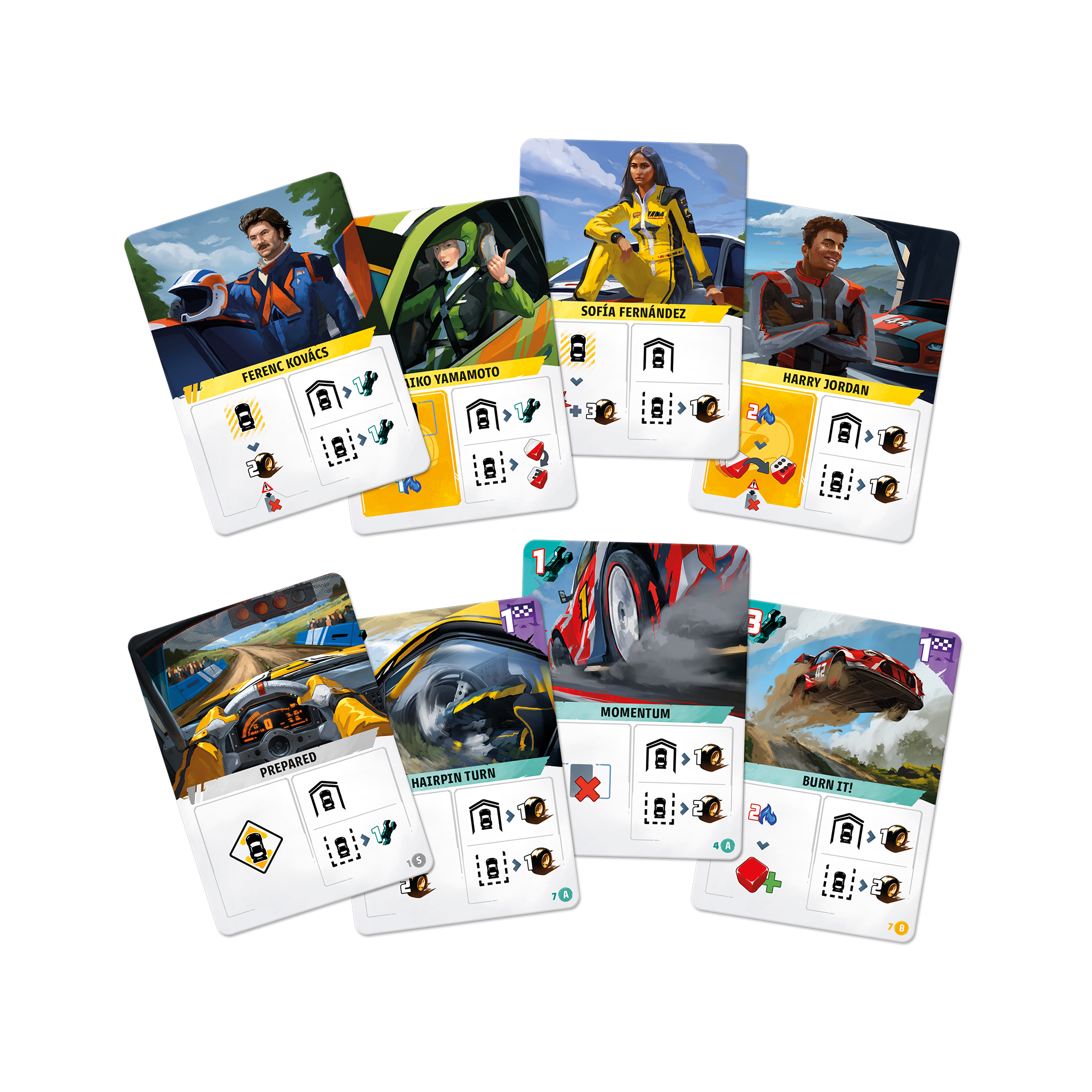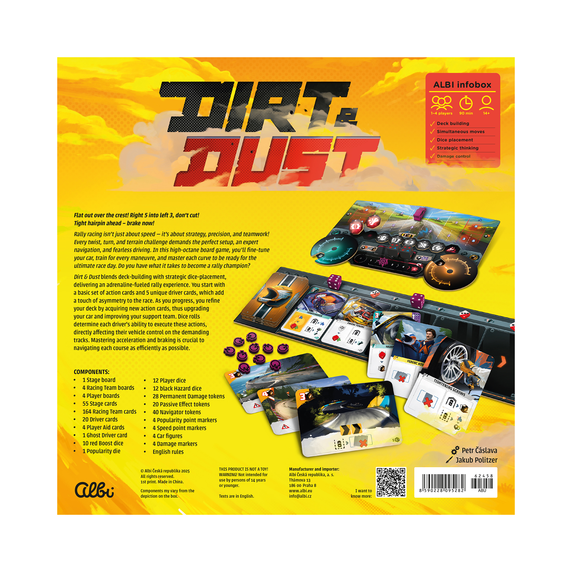 Dirt & Dust, designed by co-designer of Kutná Hora Petr Čáslava and illustrated by Jakub Politzer (Lost Ruins of Arnak, SETI, Adrenaline and more) is game for 1 to 4 players that offers way different experience than other racing-inspired games. The core of the game lies in fine tuning your vehicle (your deck of cards) and balancing risky and safe driving in order to keep your car on the track (and score as many points as you can while doing so). There is not much direct interaction between players in Dirt & Dust (as there is not much interaction in the real rally championships), but the excitement and tension is still through the roof.