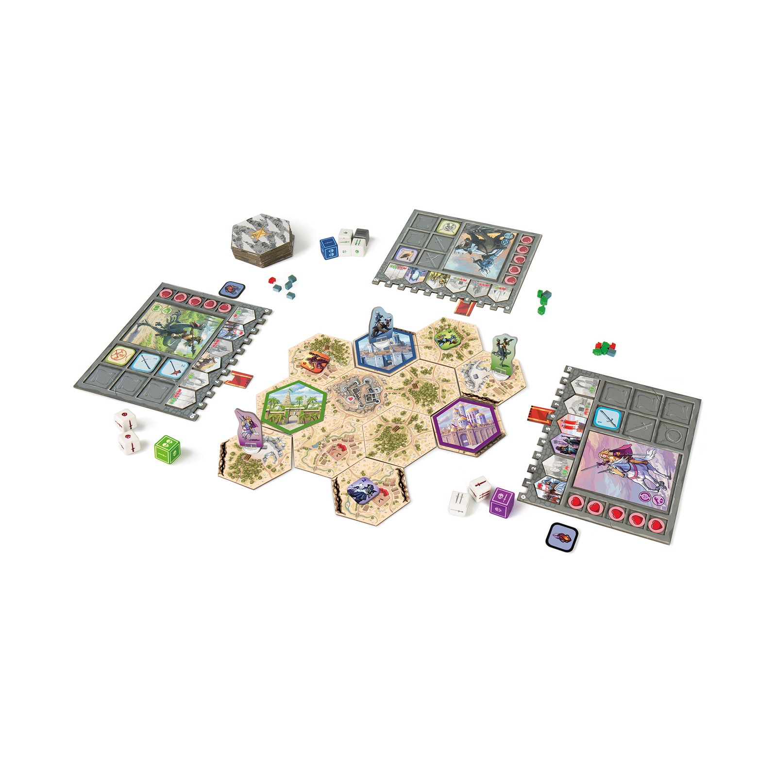 Karak 2 is a standalone sequel to one the Top 10 Children’s Games on BGG Karak. The second instalment adds a more complex layer while staying approachable for kids. Each player becomes a hero, trying to defeat monsters and their leader, the Dark General. However, to achieve that, they will have to collect resources, build and develop their cities and train new units (represented by dice) to add to their army. Over the course of the game the players will defeat monsters carrying powerful Soul Stones – and the player with the most Soul Stones at the end of the game is the winner.
