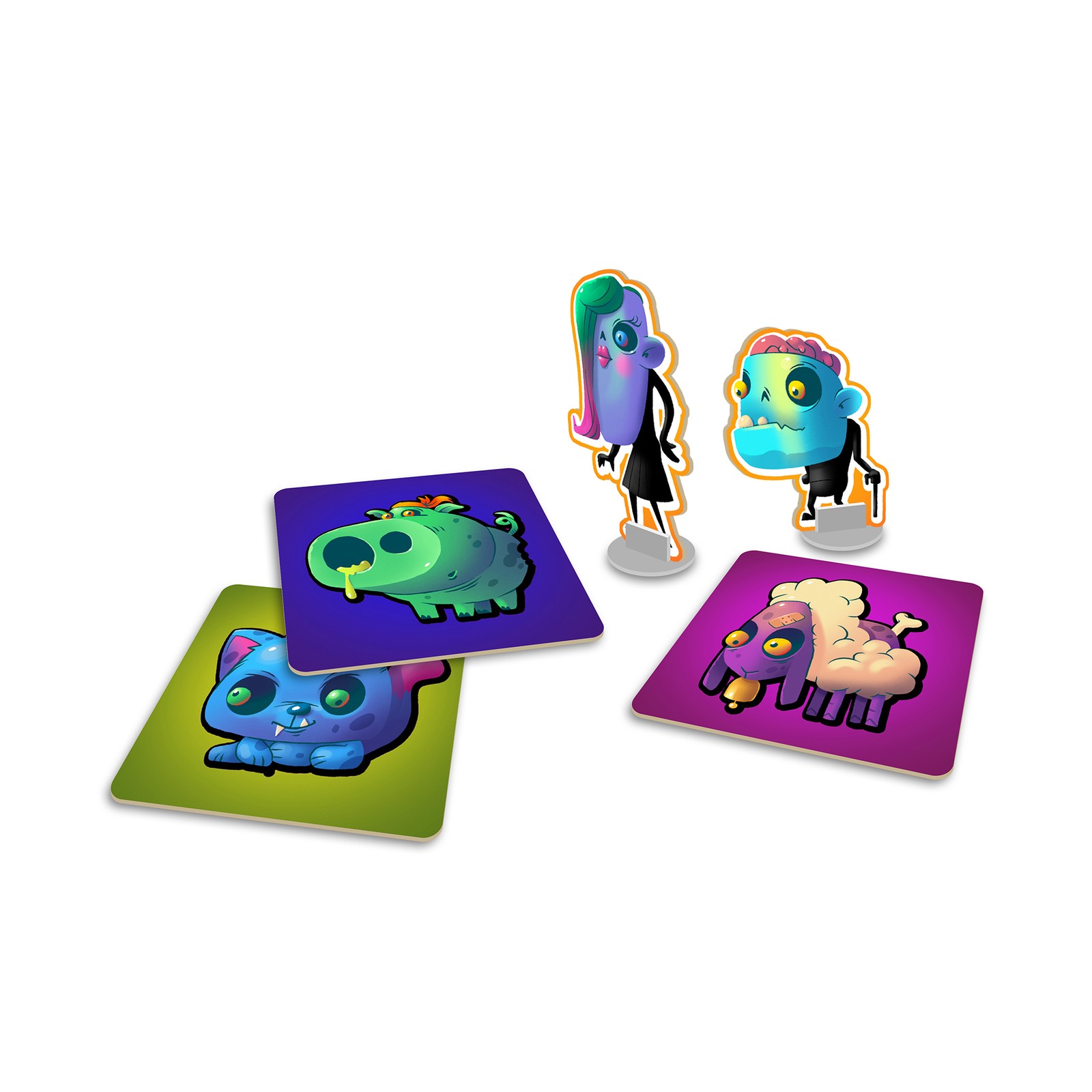 TroubleZ Run! Revenge of the Jellynator is push-your-luck game for kids of age 6 and up, designed by Giorgio Galbusera and illustrated by Petr Štefek. It’s for 2 to 4 players and you will be able to play it in 15 to 30 minutes. It has very simple rules and fast pace, so the kids will love it. In the role of TroubleZ, you will be fleeing from a monster called Jellynator and rescuing zombie animals that would otherwise be trapped by a Jellynator.