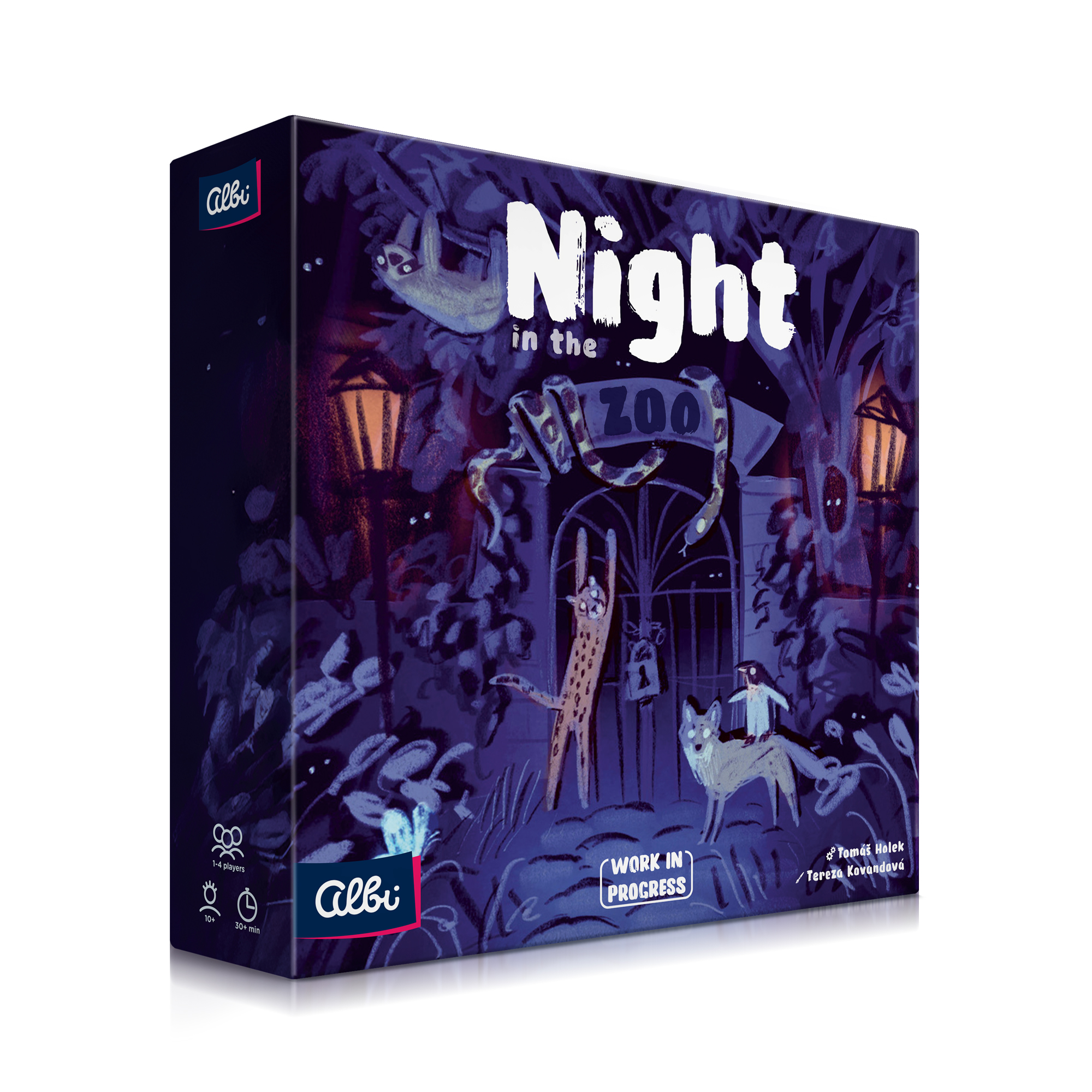 Night at the Zoo, designed by Tomáš Holek (SETI, Tea Garden, Galileo Galilei) and illustrated by first-time board game artist Tereza Kovandová.