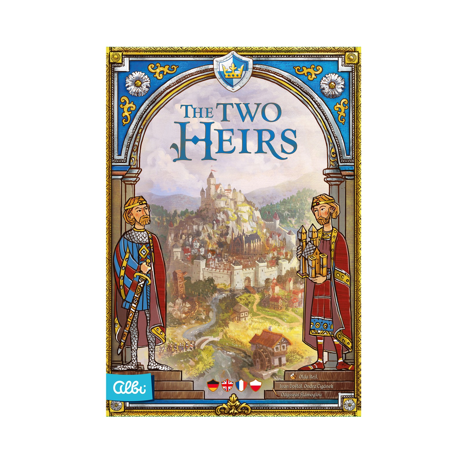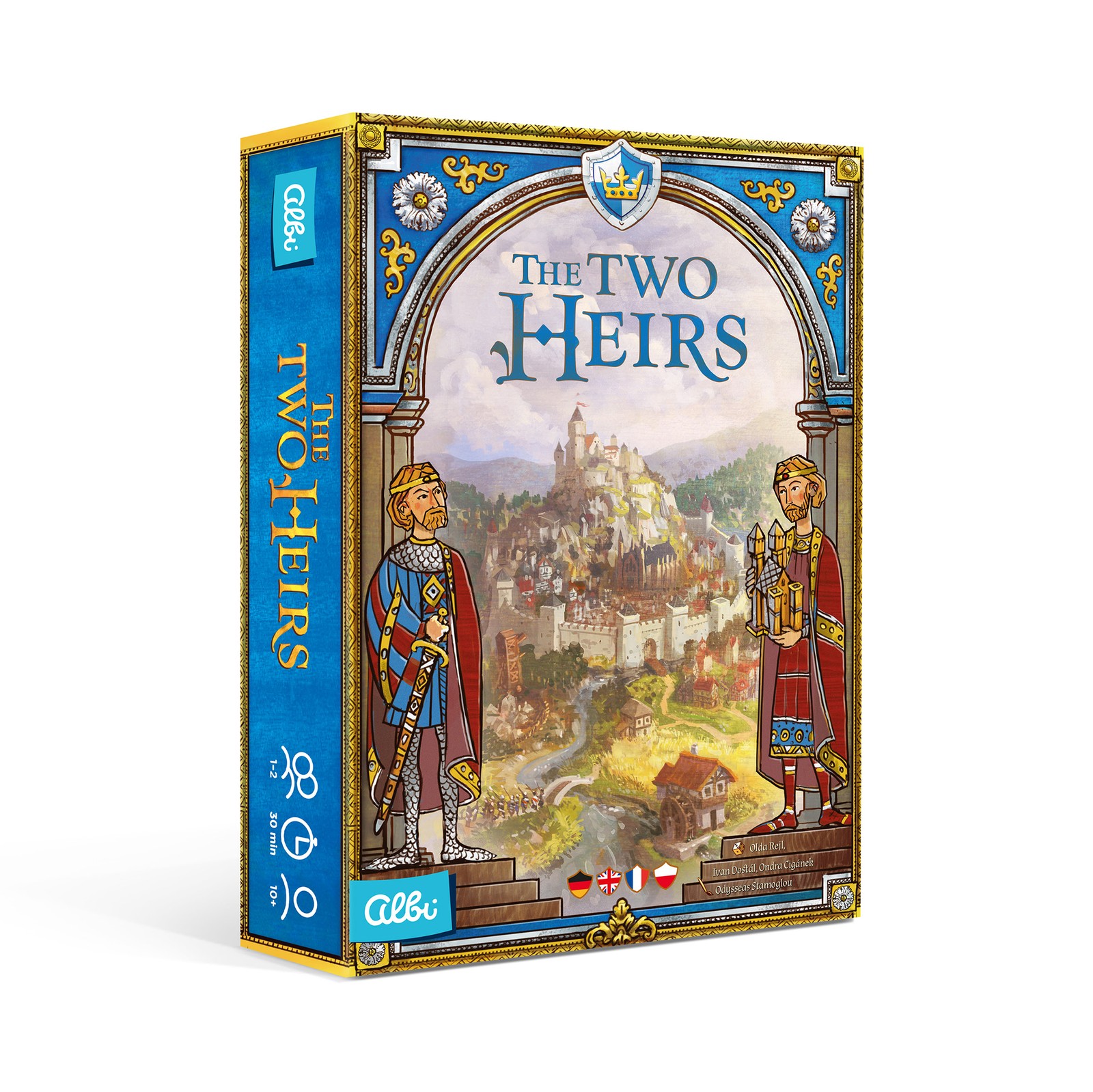 Two Heirs is a strategy competitive tableau-building games for 1 to 2 players. Players take a role of two siblings who are trying to impress their royal father with the ability to rule. The winner takes the crown. In the game the players build cards with building using 3 resources - wood, grain and stone. The buildings to build are selected from a rondel of cards. The cards available are determined by a number of warbands placed on the rondel. But warbands are also necessary for the tableau-building part since the new buildings can be built only within reach of the warband. Also, the resources available are determined with a similar way. The warband movement therefore places a vital role in the player's task to achieve victory. The consists of 6 interchangeable modules, each with 9 buildings. For each game players select 3 of those modules which grant a great replay value to the game.